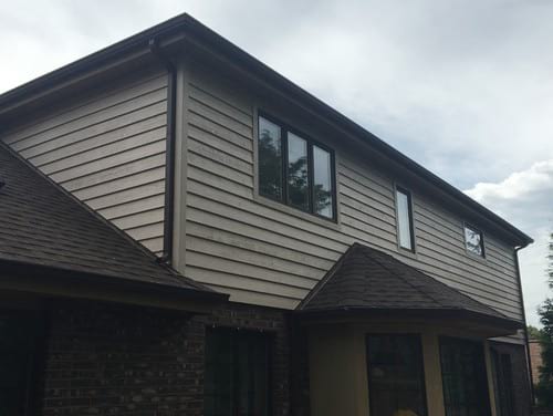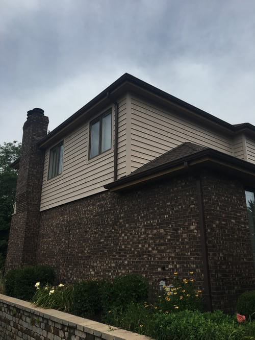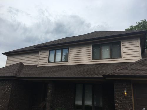 A complete exterior makeover in Downers Grove. Multi-dimensional, durable GAF Timberline shingle roofing installation to match the brick siding on the first floor of the house, complete with installing beautiful cedar lap siding in a warm, brighter tone to create contrast and a unique, modern look for our customers.