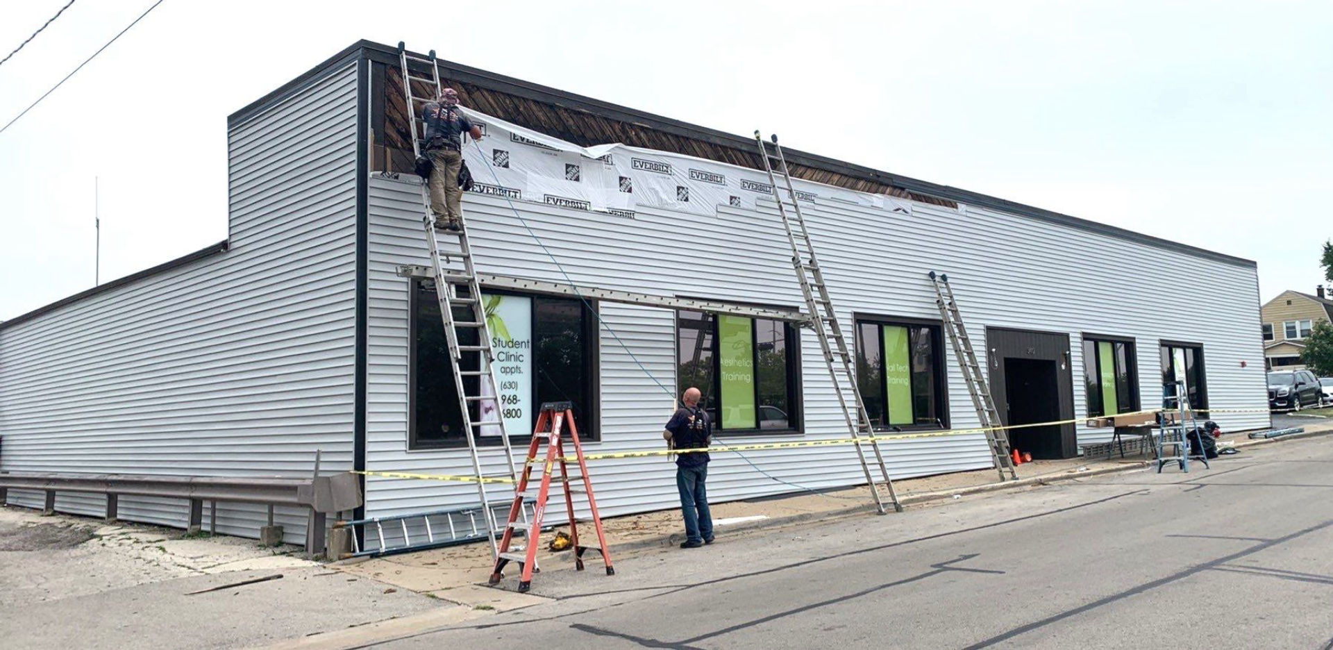 Never underestimate the power of curb appeal in not only retaining current clients, but also in potentially attracting more. This Downers Grove business, Universal Spa Training Academy, a 5,000-square-foot structure, was clad with old wood siding in a diagonal pattern. Modernizing, as well as adding extra protection, with new siding completely enhanced the building.