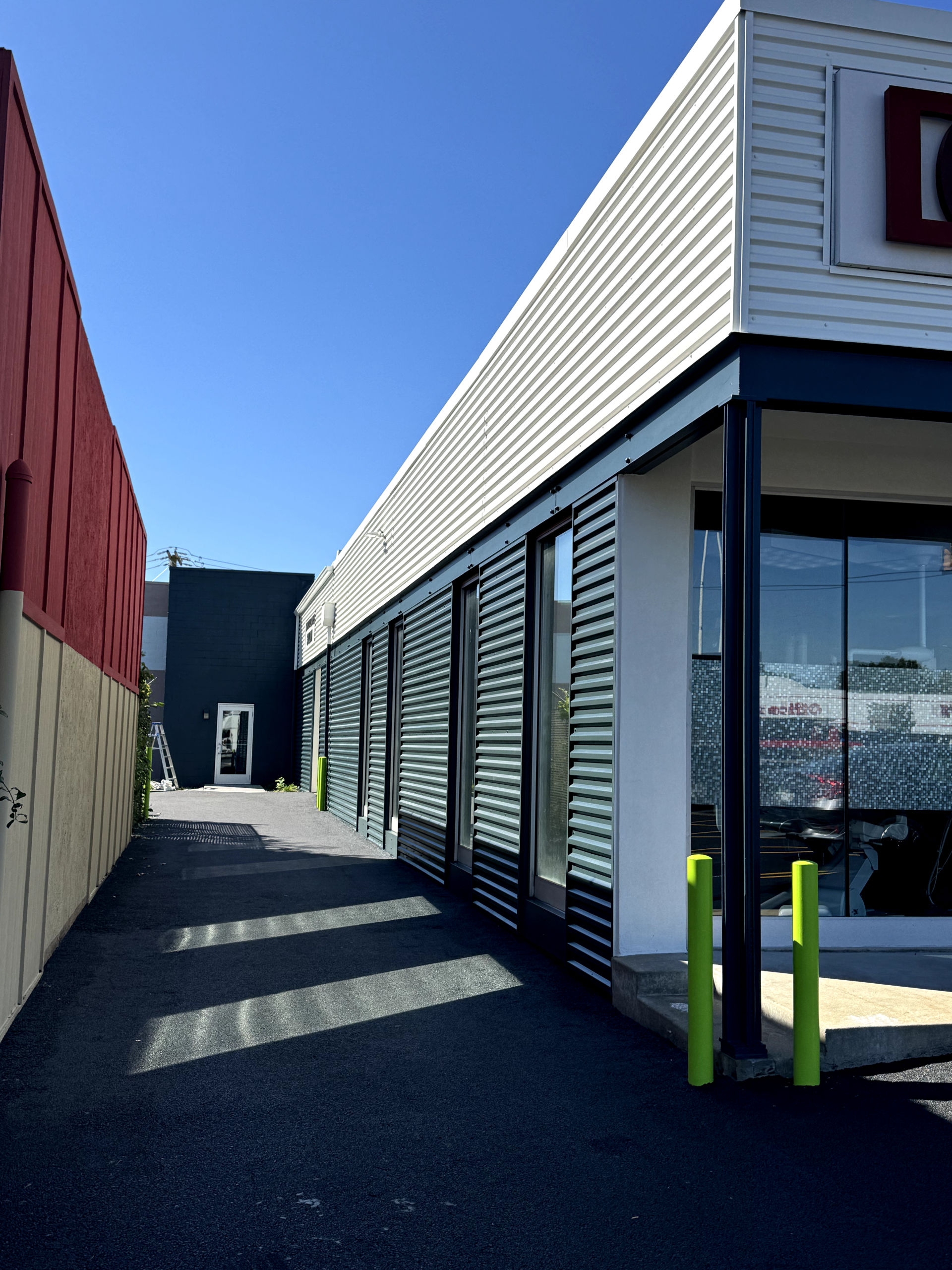 Metal siding and cinder block wall painting for commercial building