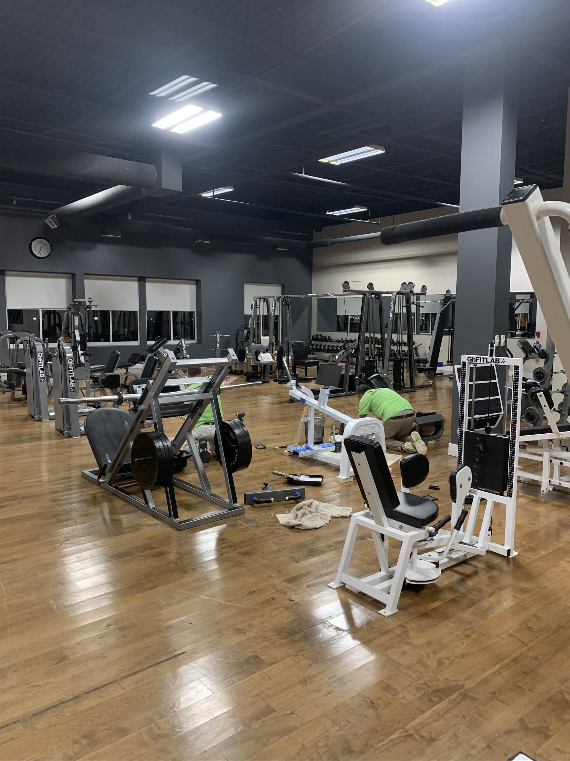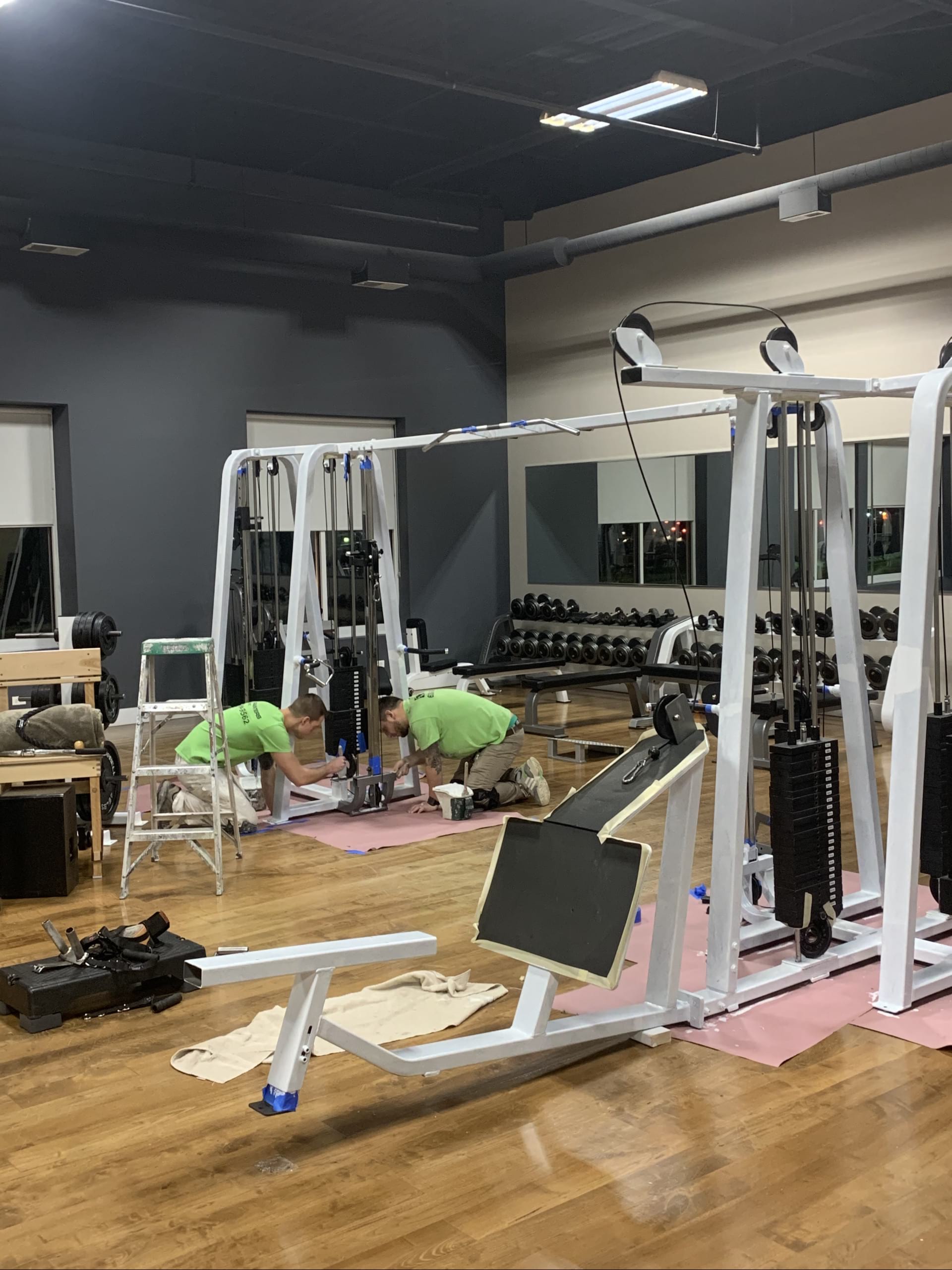 Three-night gym equipment repainting, requiring a high-degree of attention to small details in a 24-hour fitness center environment.