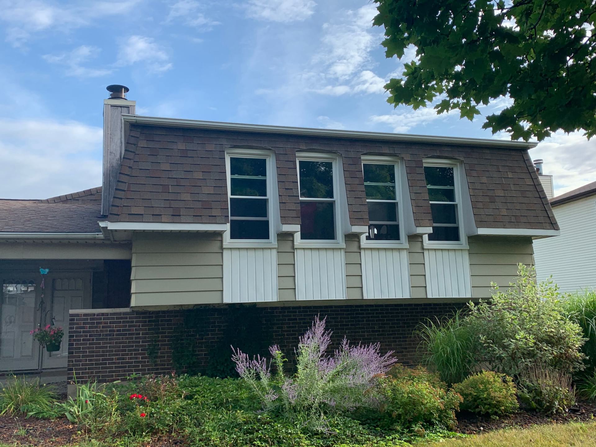 Rarely do homeowners request the removal of the French-style mansard roof, but this homeowner requested exactly that on the front and side of the house. Furthermore, she wanted to replace siding, gutters and doors.