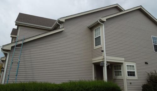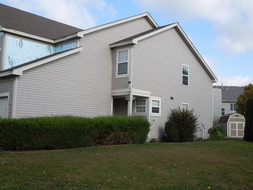 A fine recovery from hail damage in Mundelein. Severely damaged roofing replacement with GAF Timberline shingles for excellent protection against the elements, old siding materials removal and vinyl siding installation for a complete look, and new gutters and downspouts make an exterior that is long-lasting and can withstand rainfall well.