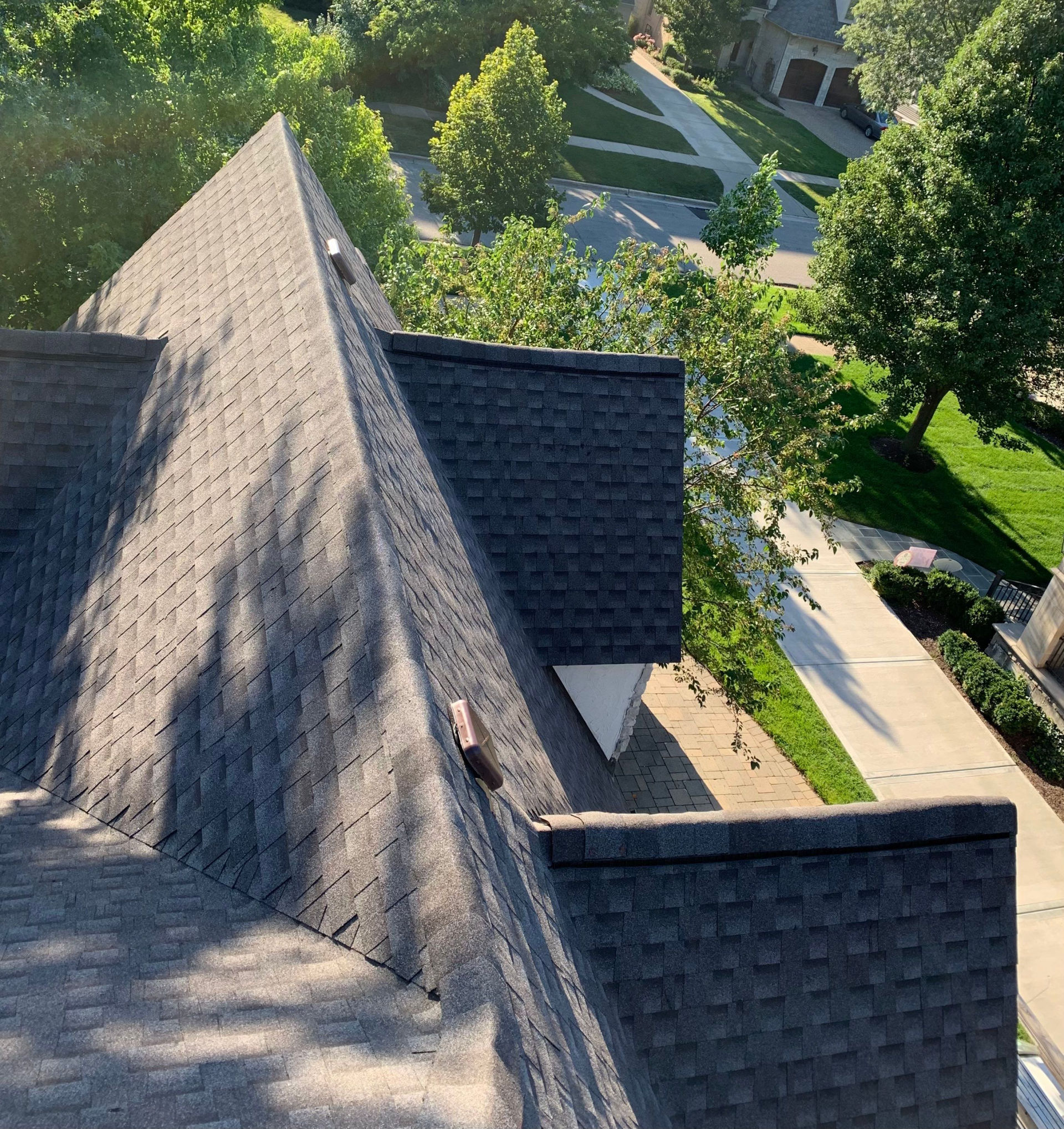 We used GAF Timberline HDZ architectural shingles in the Mission Brown color. Some of the advantages this homeowner will experience with these shingles are that they are highly durable and withstand extreme weather conditions. GAF manufactures them with superior bonding strength, which adds to the lifespan of the shingles.