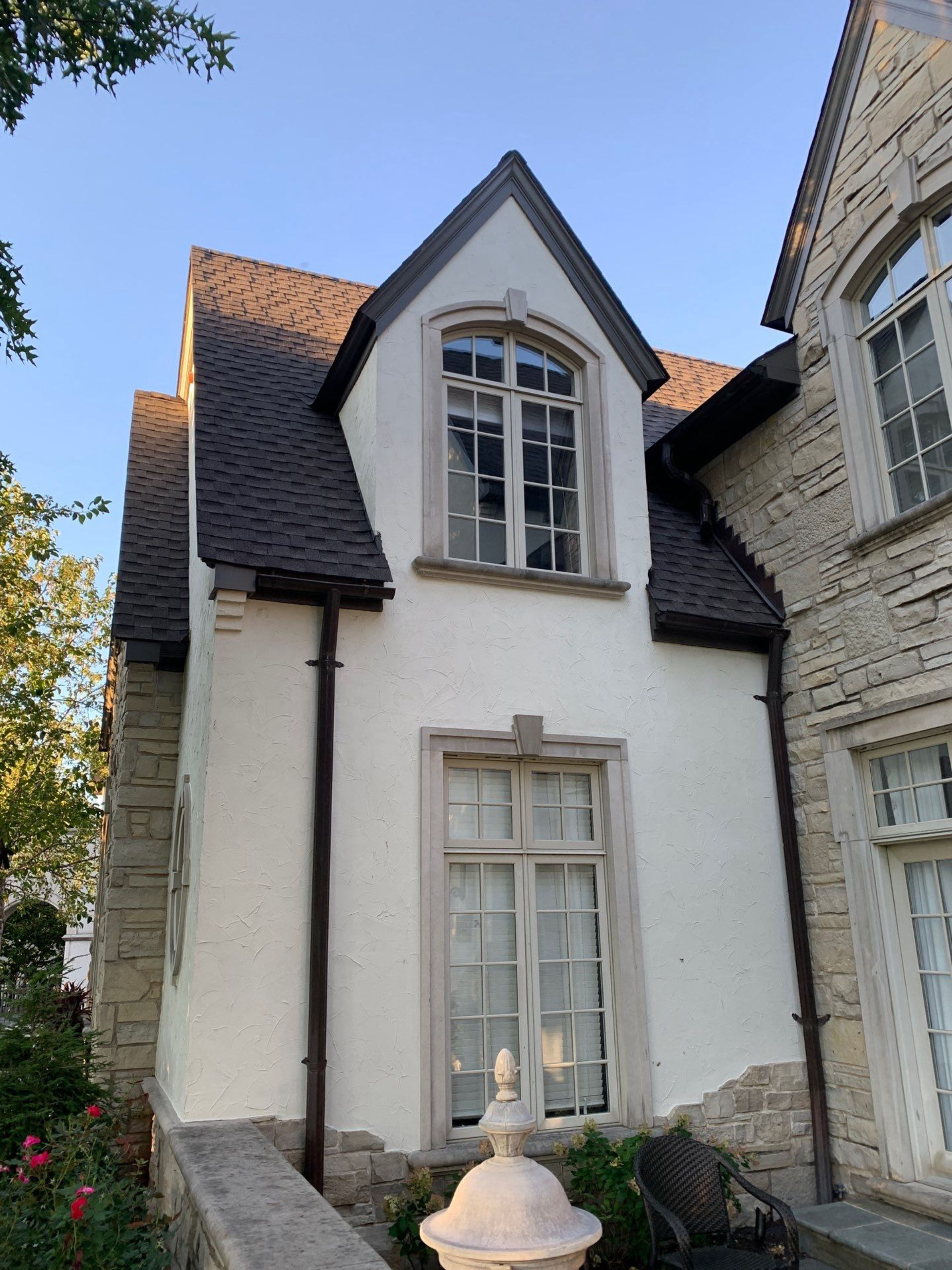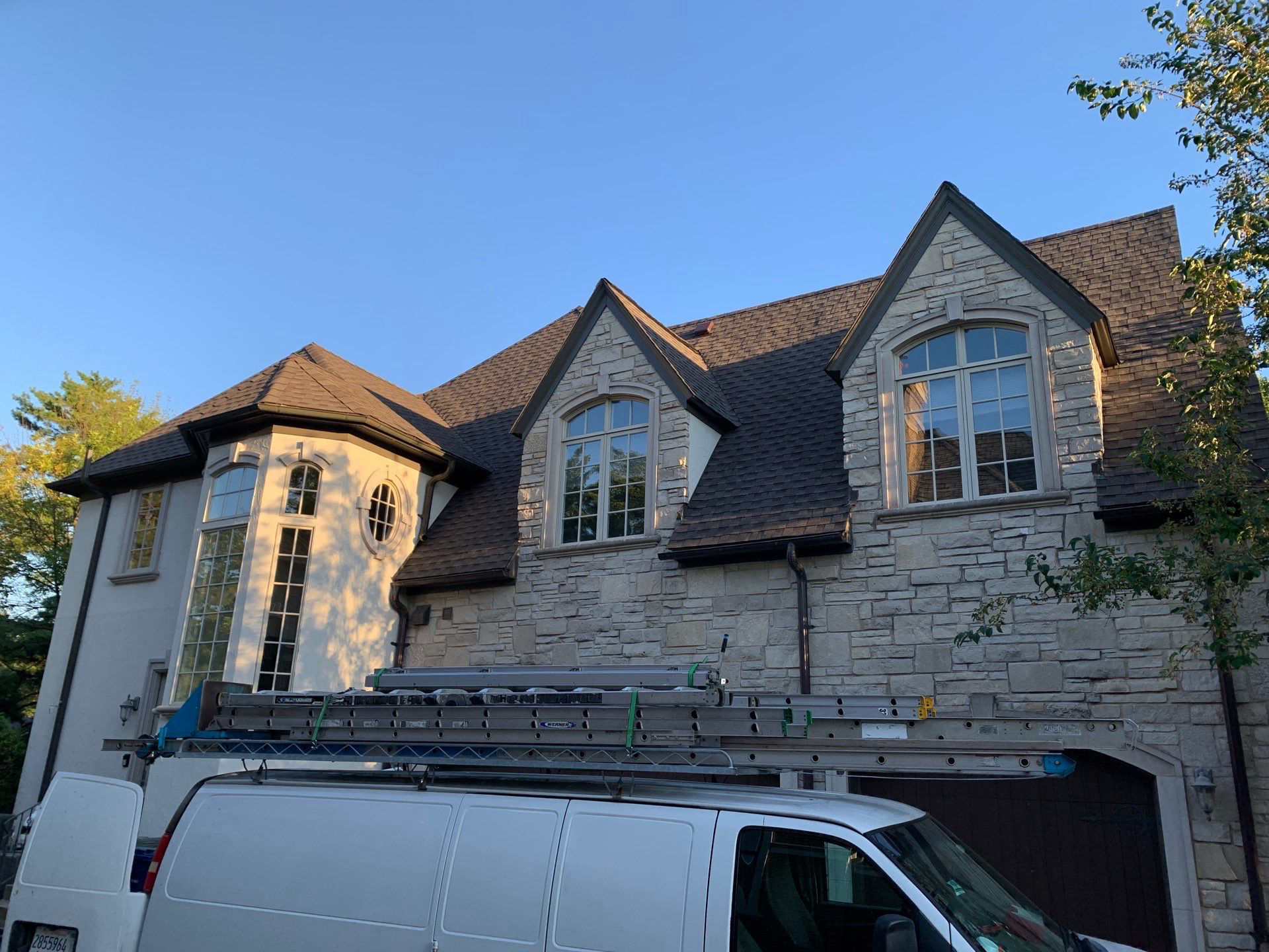 This sizable Western Springs home, which had a leaking roof, was reroofed with GAF Timberline HDZ Architectural shingles with a lifetime limited manufacturer’s warranty.