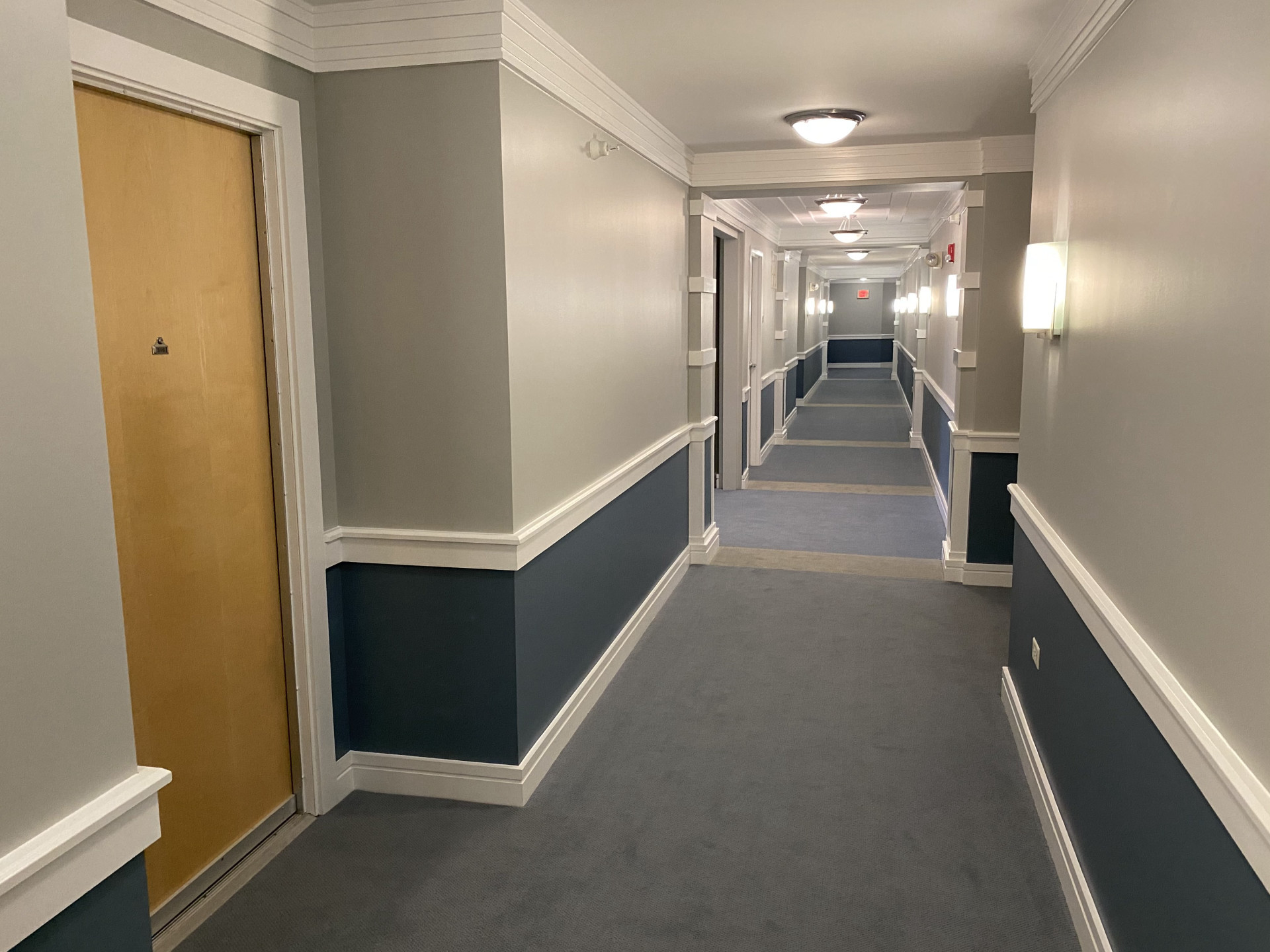 Four-story HOA project, including interior hallway painting of walls, baseboards, doors and trim, completed in three weeks.