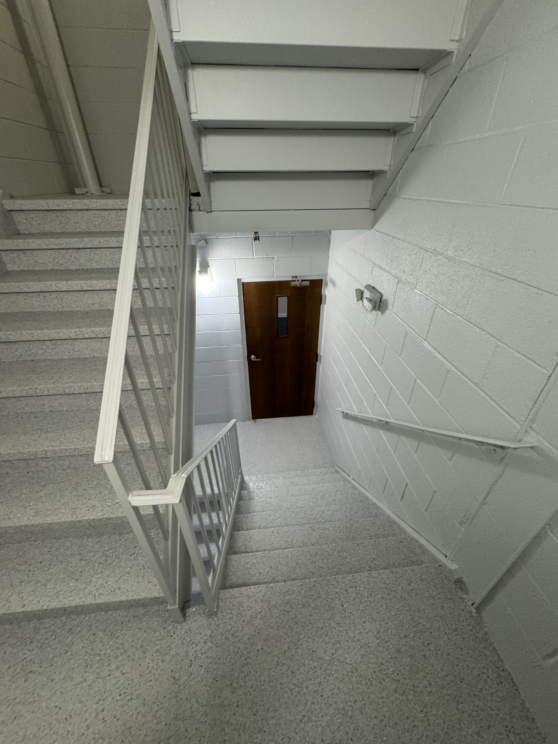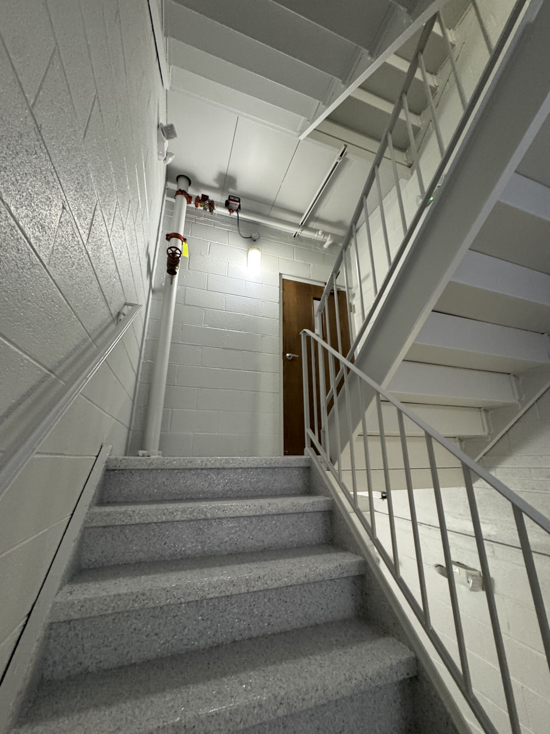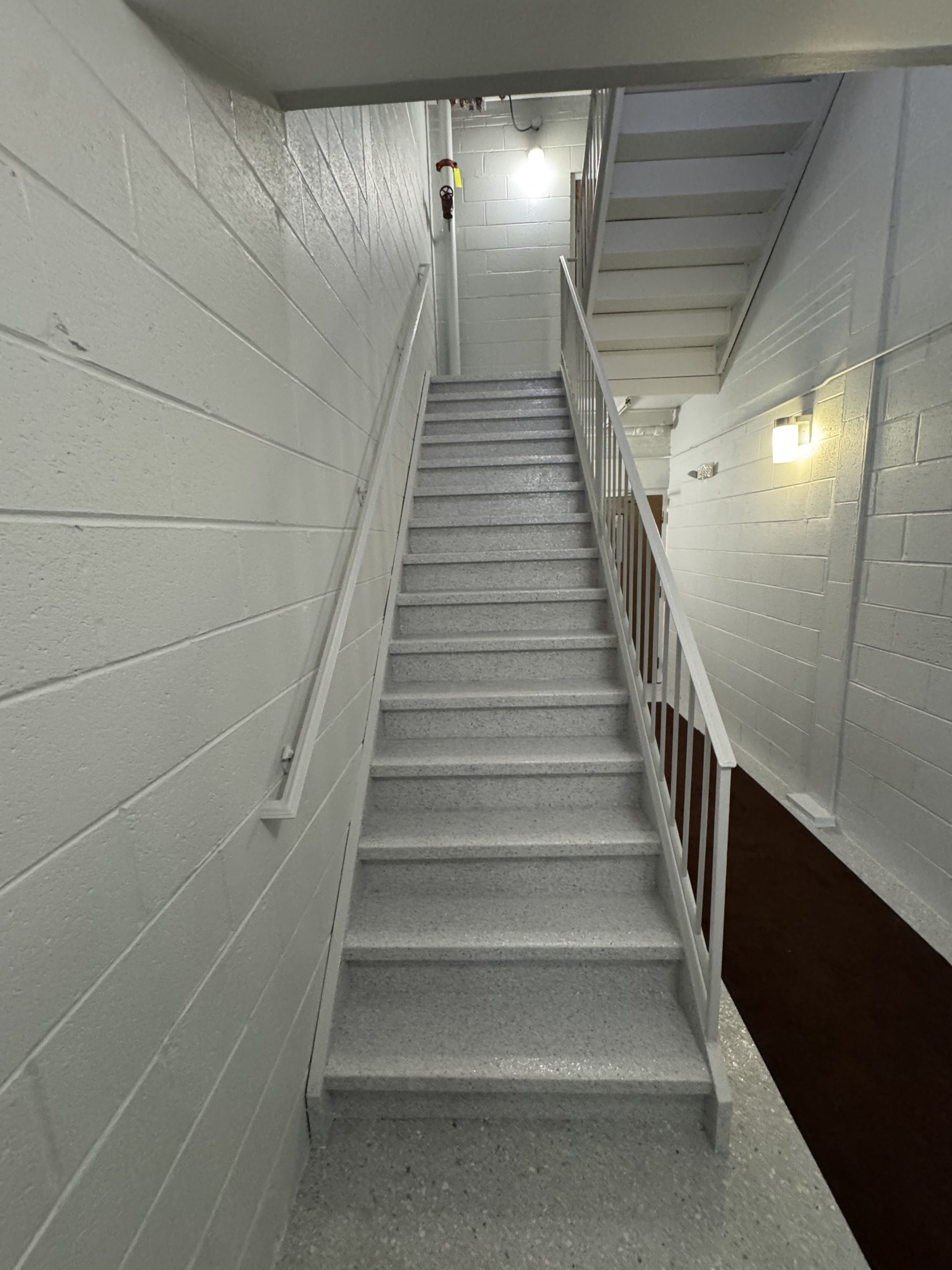 Apartment stairwell painting project involving two interior stairwells coated with durable finishes over a seven-day period.