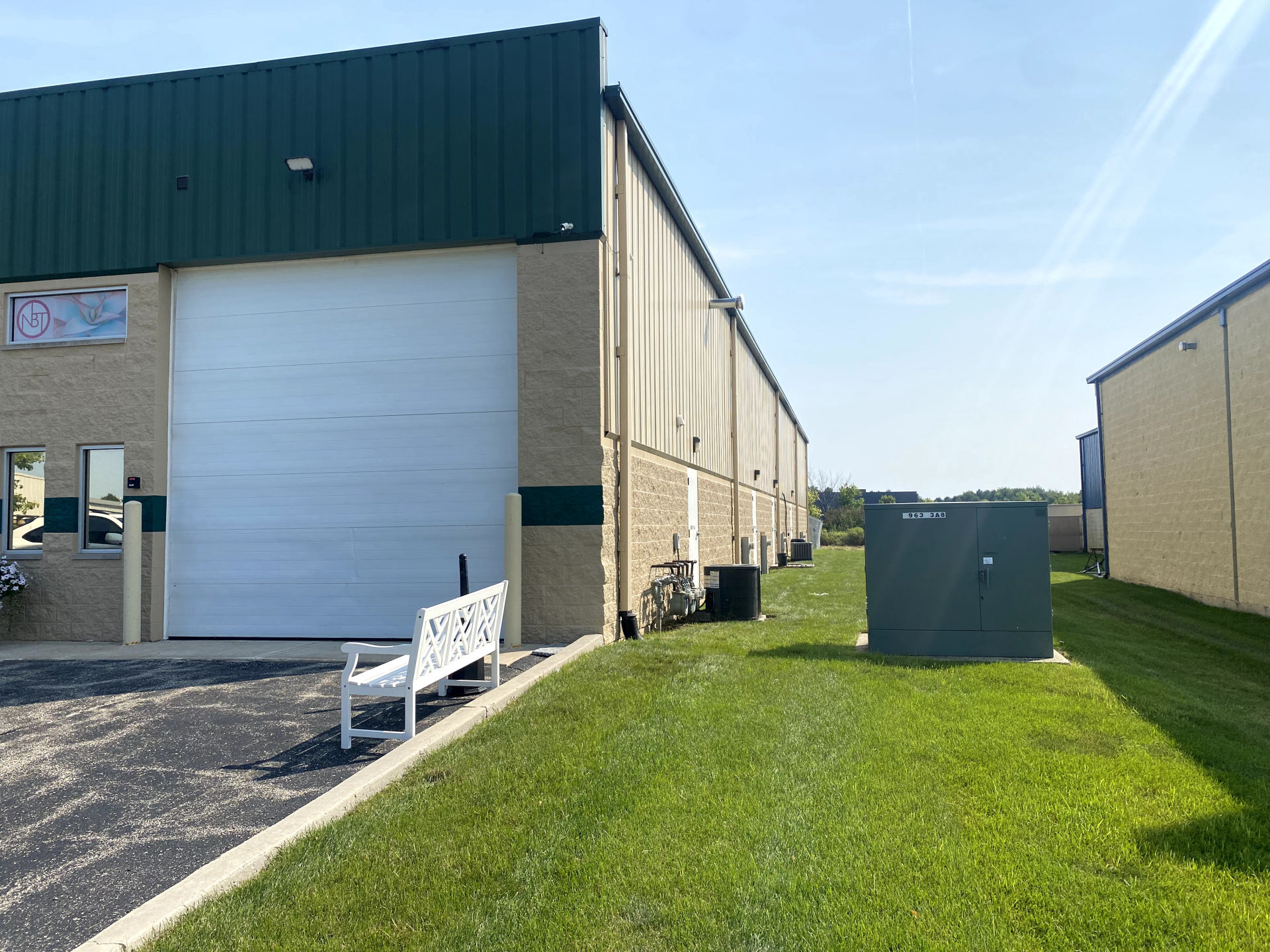 Being a go-to painting contractor in Frankfort, Painters Inc. is well versed in painting warehouse exteriors throughout the area and has completed every project with successful outcomes. For this exterior warehouse project, the agreed upon color combinations was a tan/beige for the brick surfaces and green for the metal surface and horizontal accent stripe across the lower third of the building.