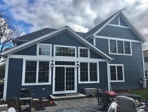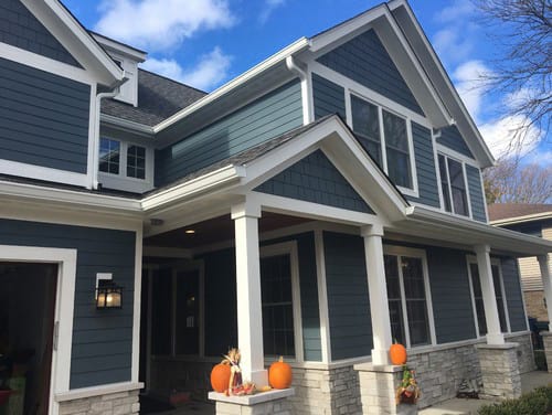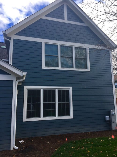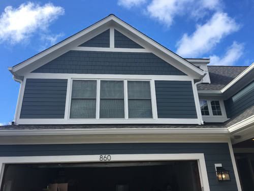 Siding replacement project in Northbrook. Old siding was replaced with the timeless, durable HardiePlank lap and shake siding from James Hardie.