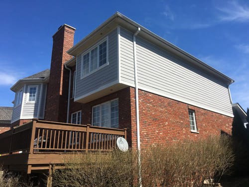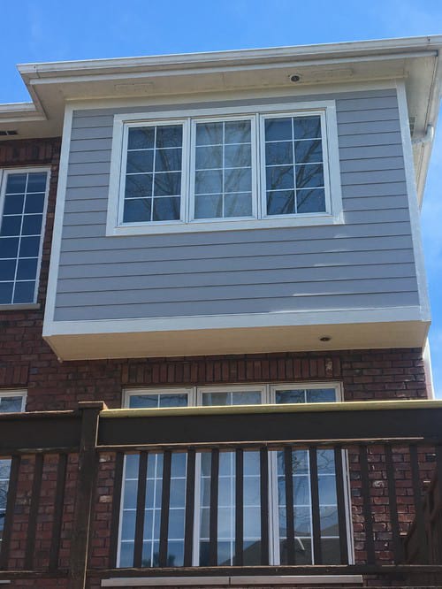 The siding of choice for this transformation included white LP Smartside trim and James Hardie lap 6-ft. exposure siding in a light mist color.