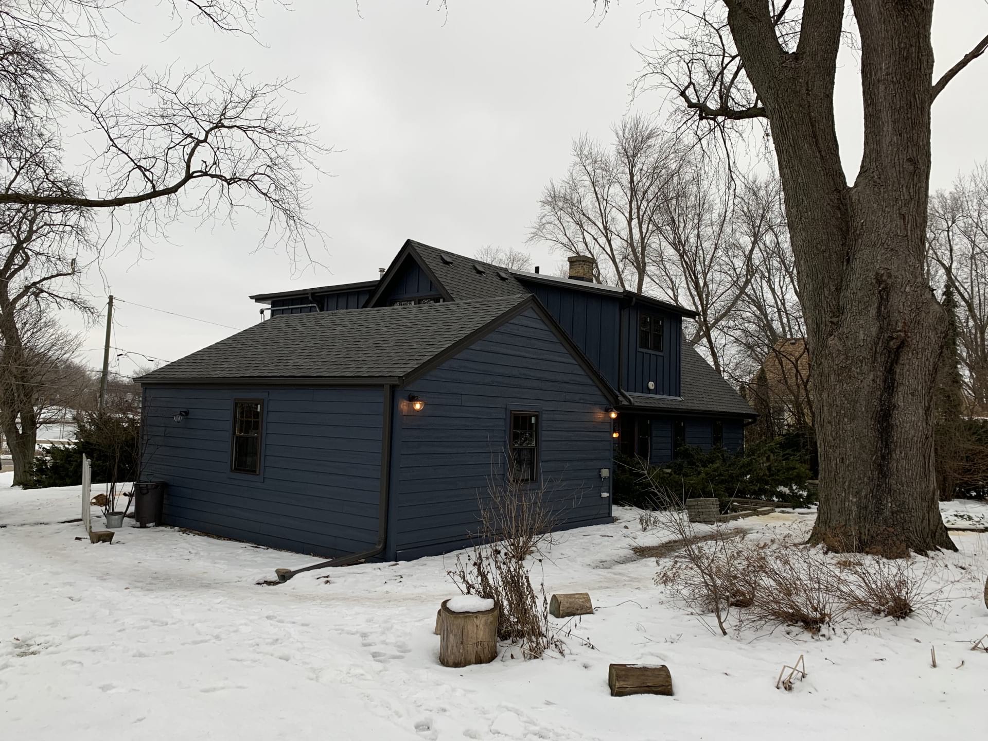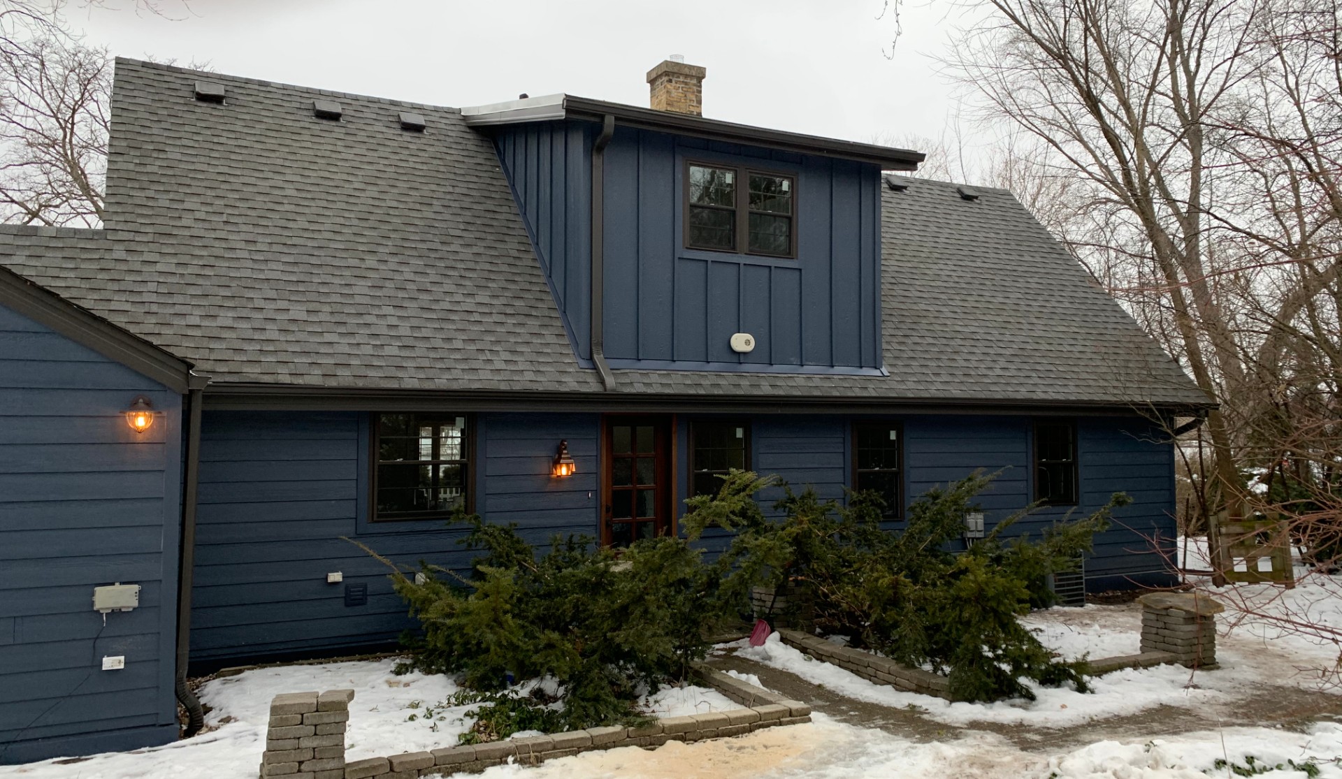 XFollowing the installation of the windows, the VIS crew installed 2,300 sq. ft. of LP Smartside lap siding along with 4 by 8 ft. board and batten siding in SW-Sea Serpent color. The soffit and fascia were wrapped in a Dark Bronze color, which was a great match with the new siding.
