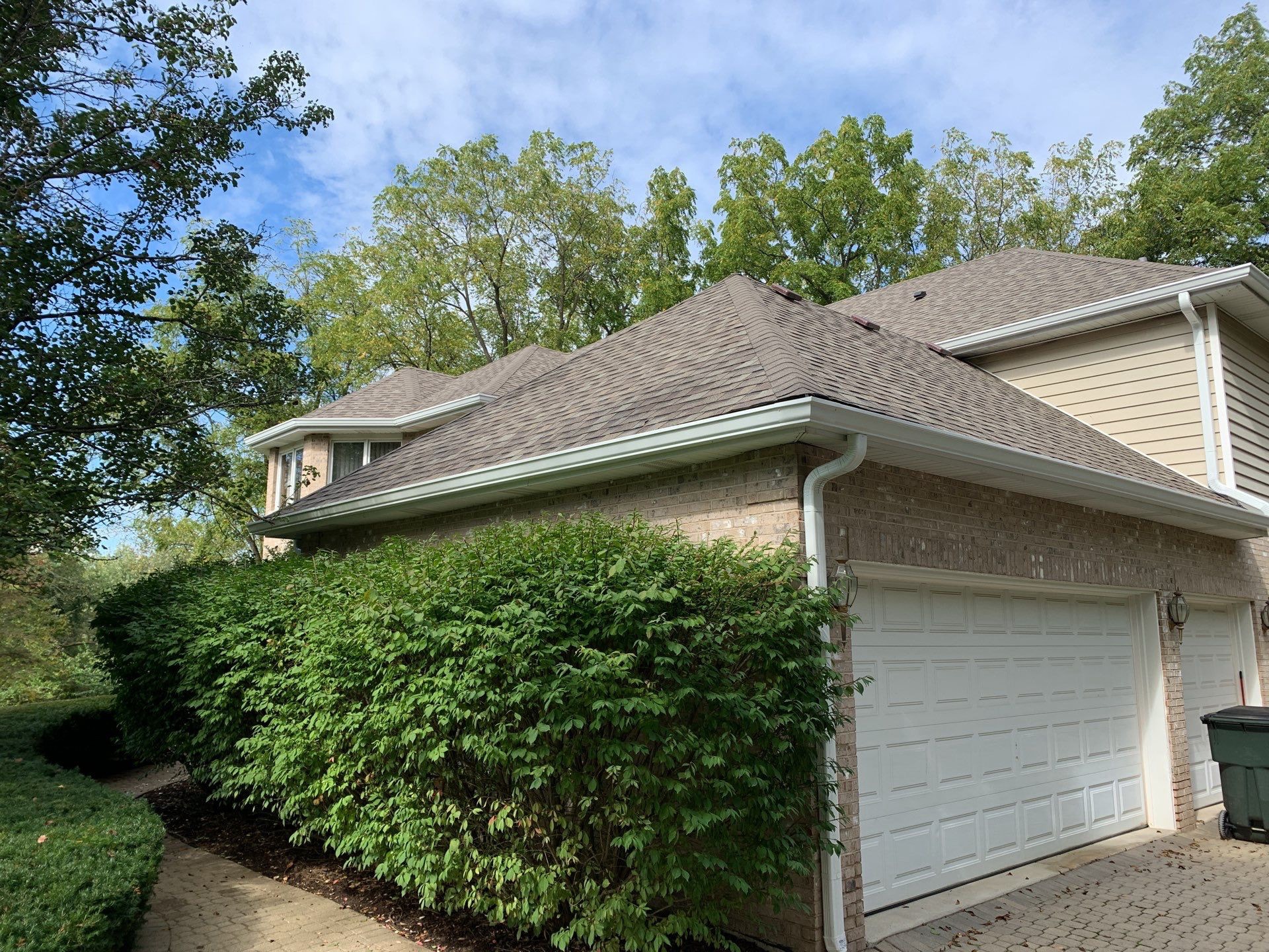 This large and complex roof replacement job in Homer Glen involved installation of Owens Corning shingles and complete gutter replacement. Despite the complexities and size (3,000 square feet), the project was completed in 1.5 days.